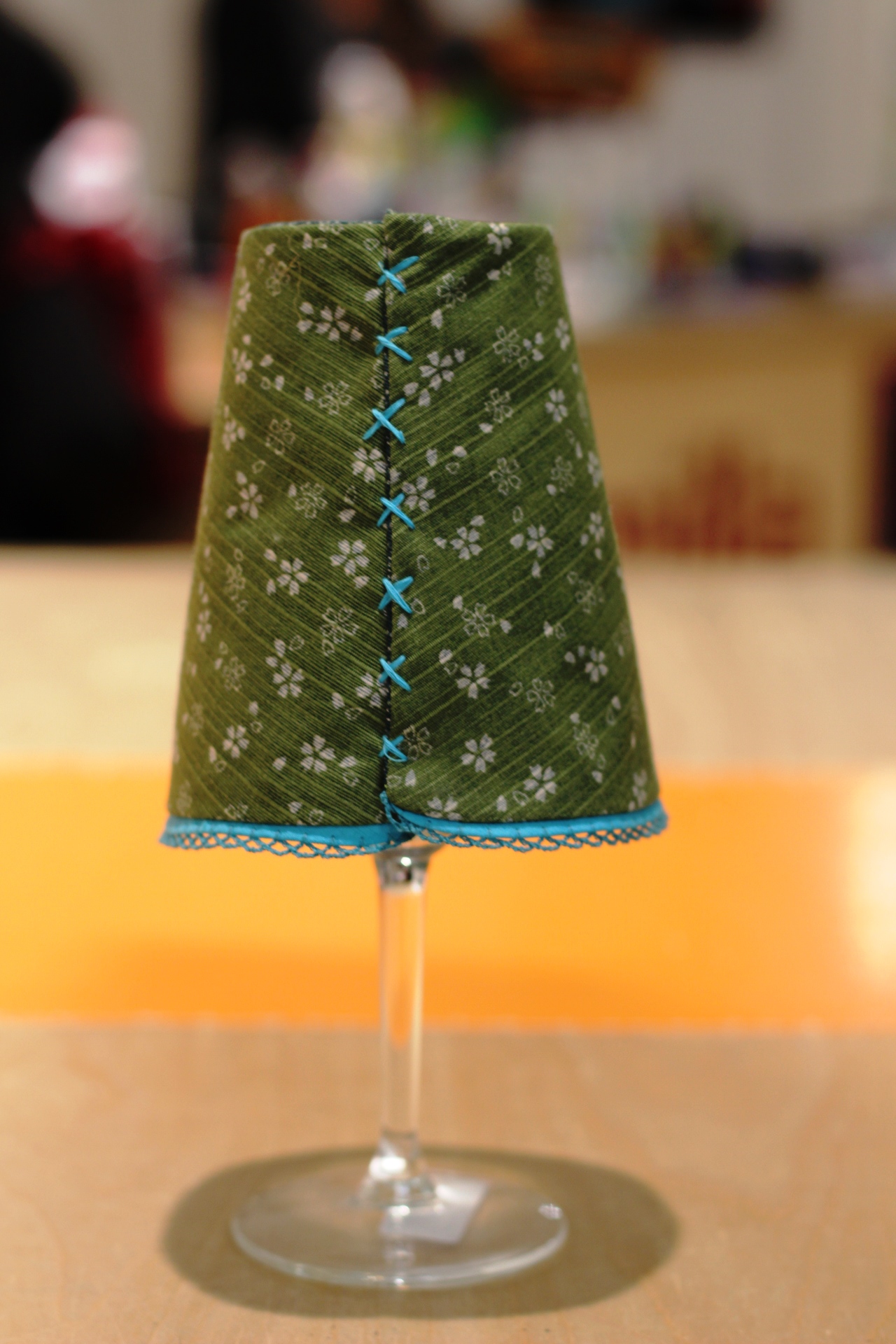 Jetzt müsst ihr das Lampenschirmchen noch mit ein paar Handstichen zusammennähen, denn unter die Nähmaschine passt es ja nicht mehr.