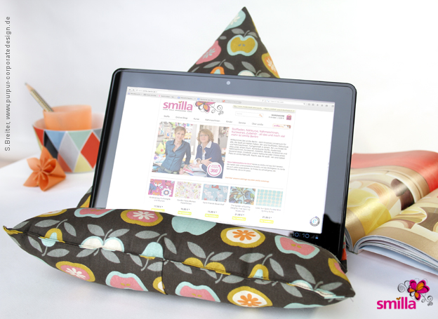 Also, ran an die Nähmaschine und dann auf’s Sofa. Mit Tablet und Kissen natürlich. Und falls euch unser Apfelstoff hier gefällt, den gibt es aktuell bei smilla.